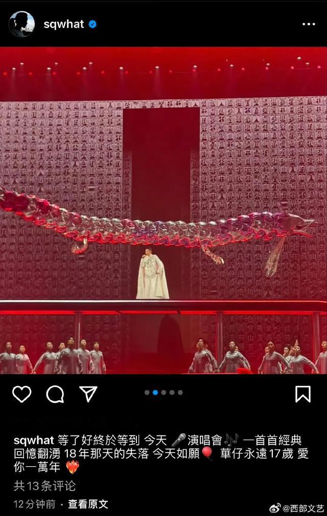 近日,舒淇在社交平台发文:终于等到了这一天,演唱会上一首首经典歌曲,让我回忆翻涌,18 年那天的失落,今天终于如愿,华仔永远 17 岁,爱你一万年。